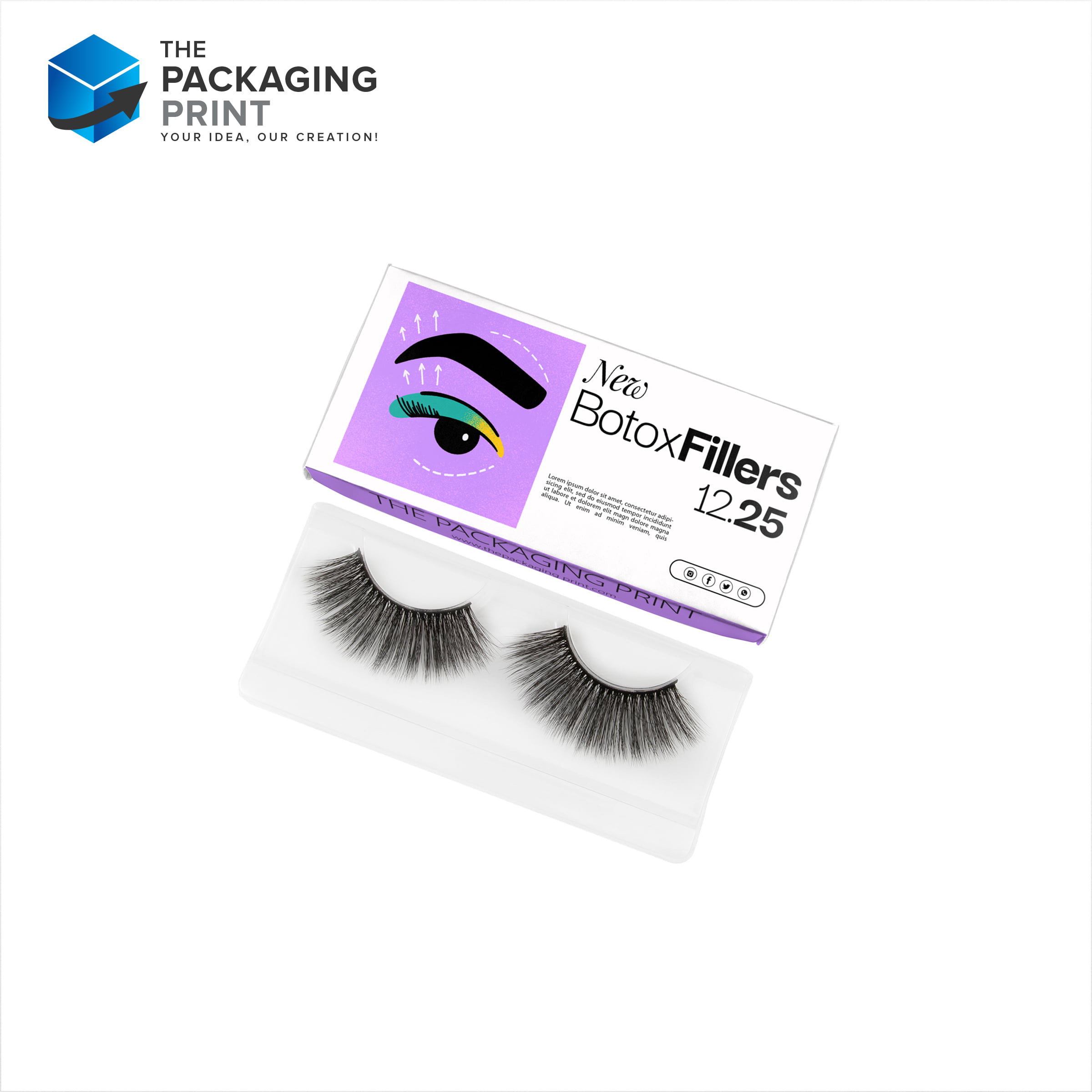 Termed as false eyelash boxes, these customized packaging solutions bundle complete sets of artificial eyelashes, safeguarding them from damage. The Packaging Print provides free shipping, cutting, and templates for these boxes, offering customizable window placements for your product visibility. You can choose from a wide range of pre-custom designs or personalize your boxes to meet your exact needs.